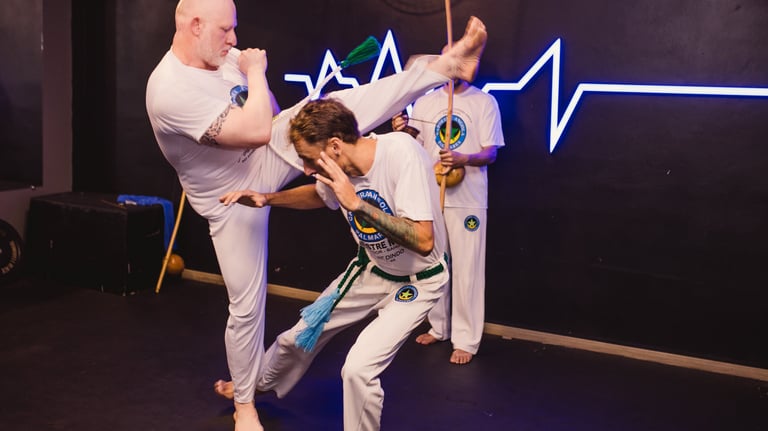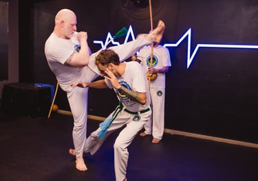 Mistura arte marcial, ritmo afro-brasileiro e condicionamento físico. Aulas dinâmicas que fortalecem corpo e mente, além de promoverem agilidade, força e equilíbrio.